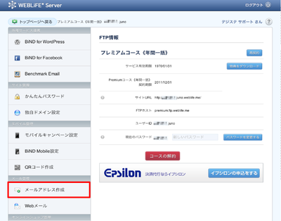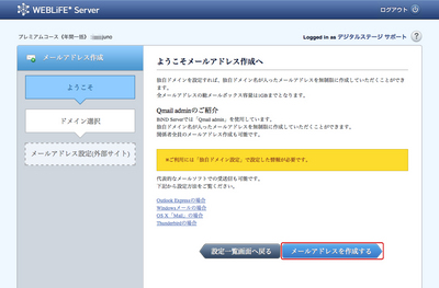 WebLiFE* サーバー(旧 BiND サーバー)はQmail adminを使用しており、独自ドメインのメールアドレスを無制限に作成することが可能です。また、特定のメールアドレスの転送や自動応答、メーリングリストを作成することが出来ます。