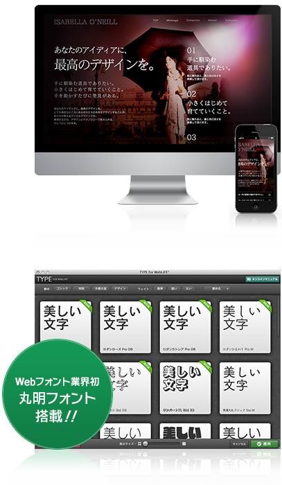 Webフォントの設定に必要な面倒な作業はBiNDとLiVE2の新機能「TYPE for WebLiFE*」におまかせ。フォントデザインをチェックしながら選ぶだけ!